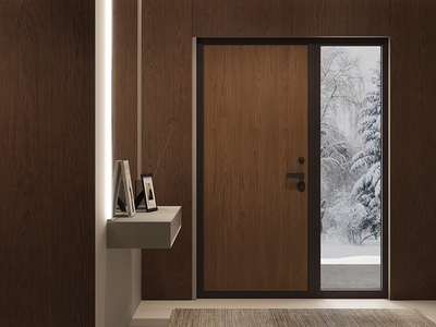 Декоративная накладная панель - устанавливается на входную дверь с внутренней стороны взамен уже существующей. В сочетании с наличниками она повторяет образ и отделку межкомнатных дверей Волховец, что позволяет создать цельный и завершённый дизайн всего пространства.